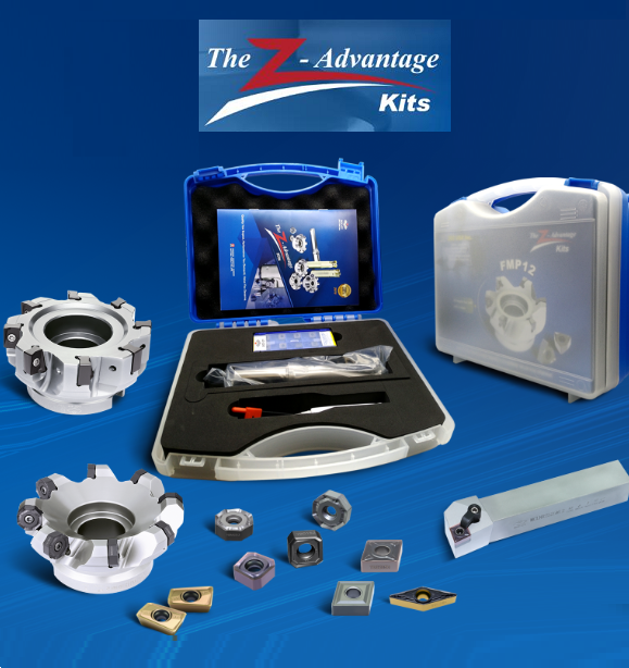 Our Z Advantage Milling/Drilling & Turning Kits are the best performance value in the industry. These Kits offer a cutter or drill and inserts of our best-selling products packaged in a light weight handled container, at a price you have to see to believe. Check out our low Kit prices by clicking the arrow below.